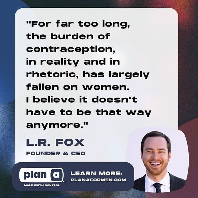 If Plan A was authorized by the FDA and had significant penetration (lol, I crack myself up), it would weaken their legal challenge quite a bit. This is a both/and issue for me - tracking the progress of reversible contraceptive measures in men, and helping expand contraception access to those who need it the most (which I support as a board director of New Morning and creating content for @forfactssake_)